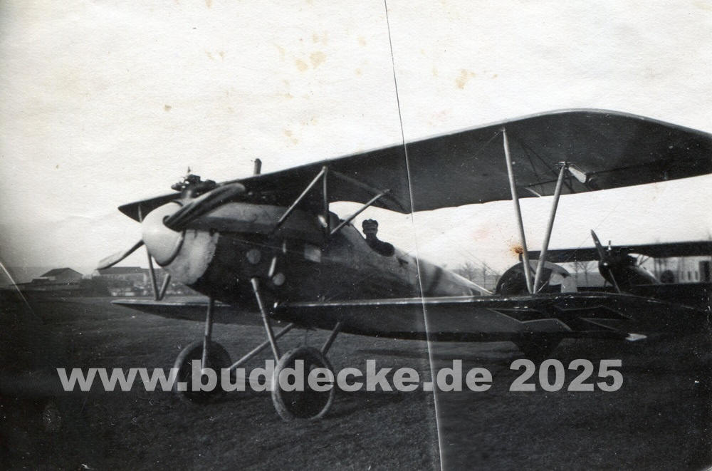 Hintergrund ein Kampfeinsitzerflugzeug Typ Albatros D.III