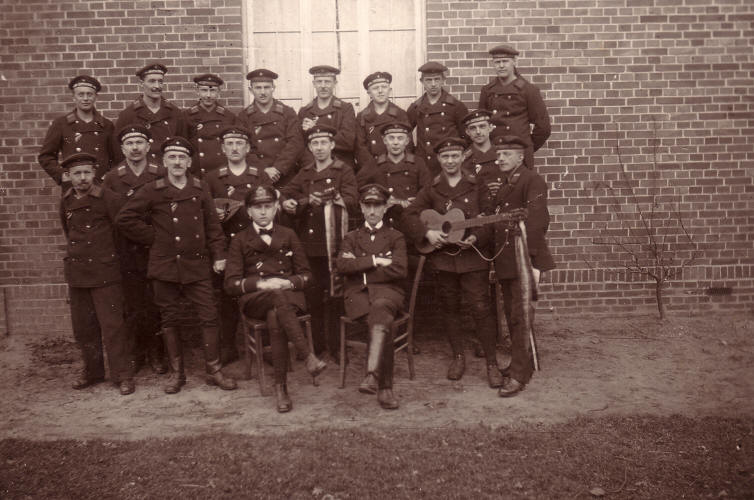 Gruppenfoto der Besatzung von L 52, Gerstl hintere Reihe vierter von links.