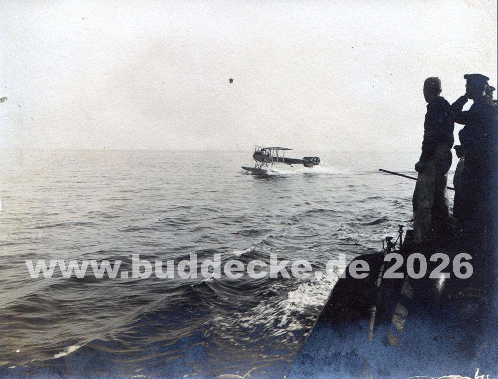 SFS Warnemünde. Das Seeflugzeug Typ Friedrichshafen 294 setzt zur Wasserlandung an.